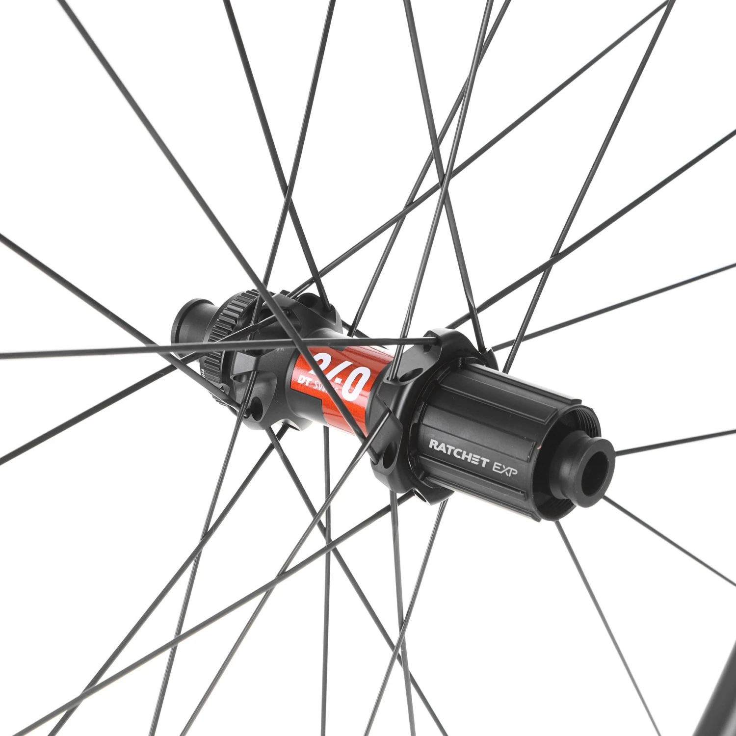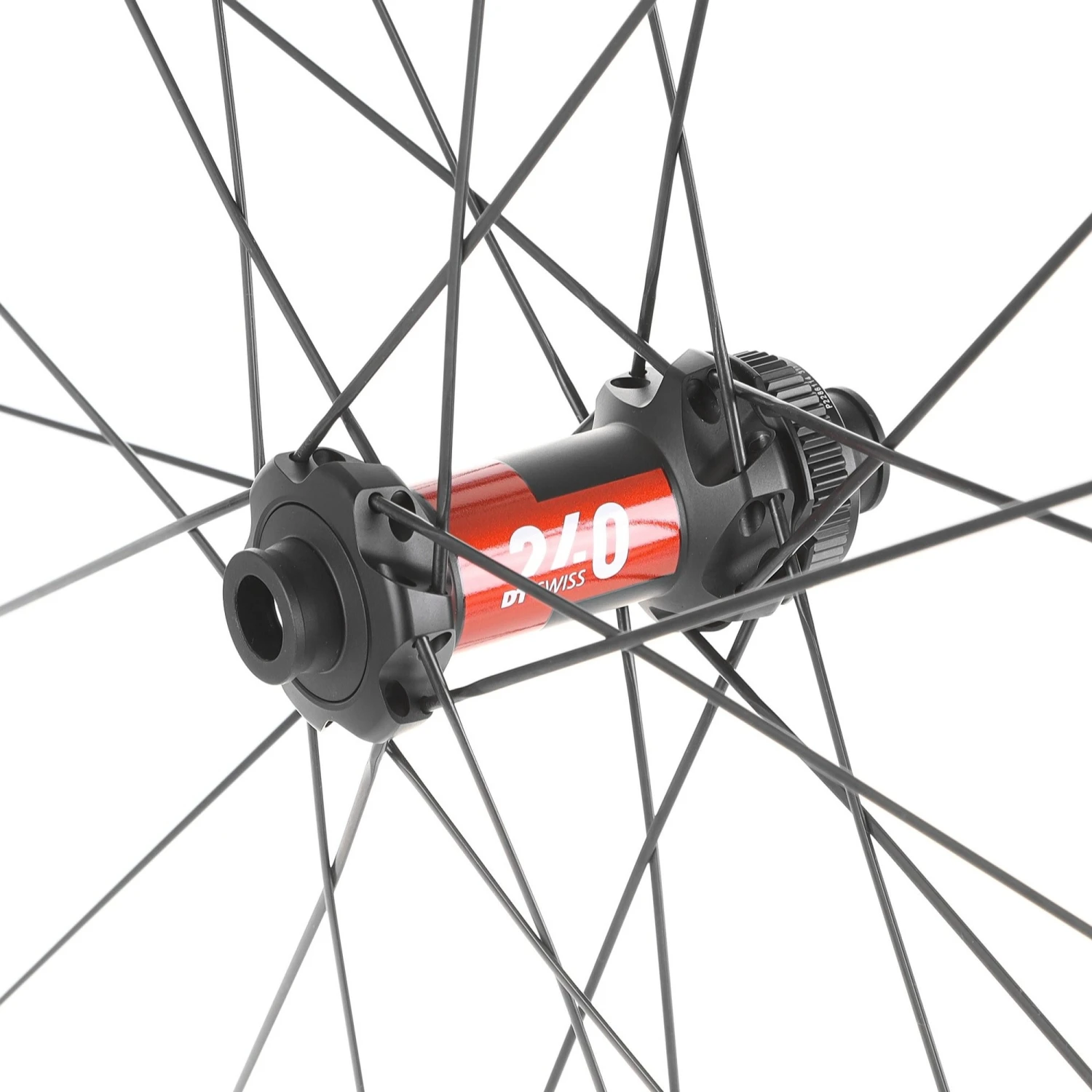 The high-quality DT Swiss 240 EXP hubs offer thru-axles, Center Lock rotor fitting and sealed bearings, ensuring that the steering is sharp and power transfer efficient, whilst the 36 tooth ratchet engagement ring gives instant response to pedal inputs. Sapim’s renowned CX-Ray spokes tie the compelling package together, further improving stiffness, reliability and efficiency.