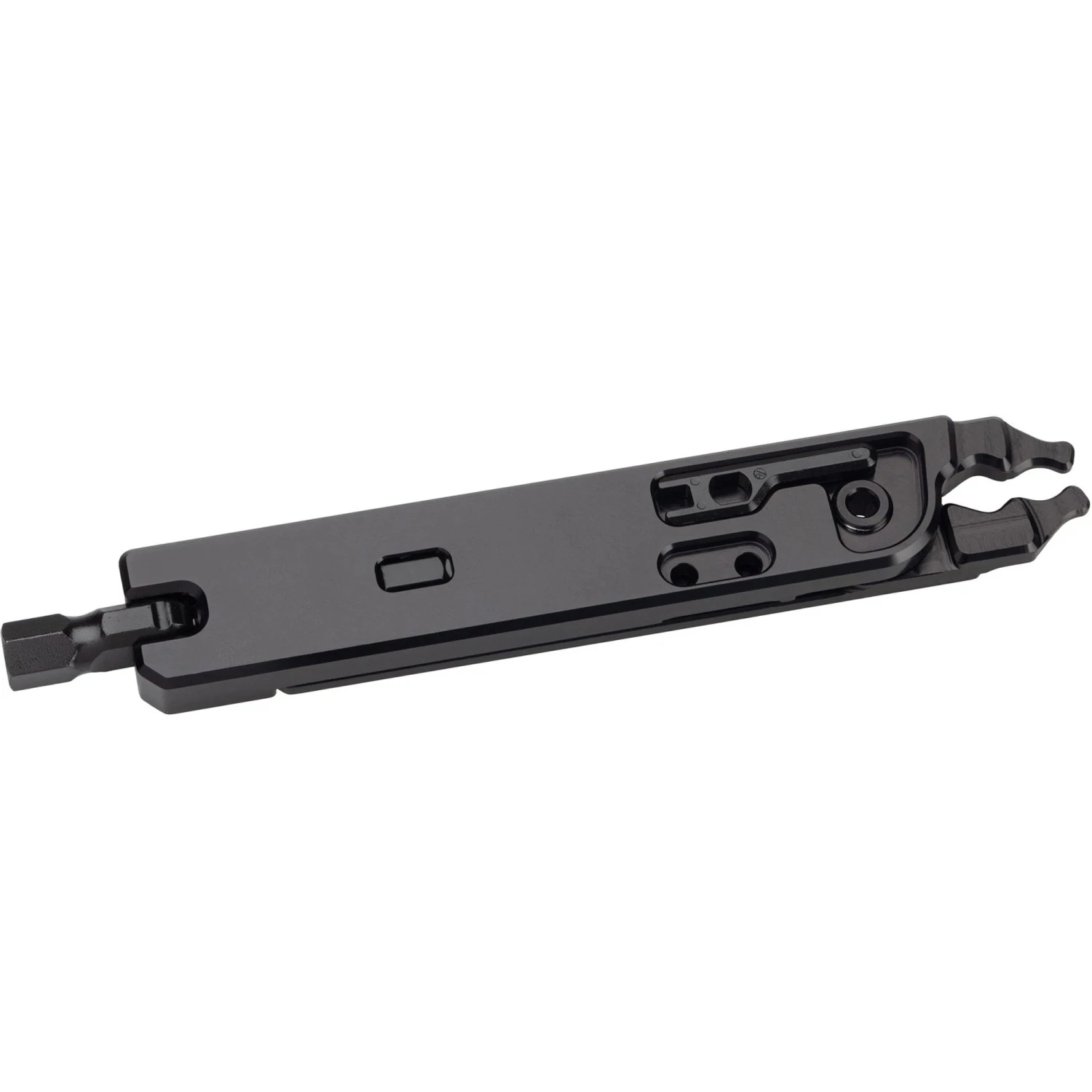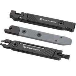 As well as a full raft of hex bits, the tool includes a chain breaker, master link pliers, rim dent remover, Torx bits and tyre plug tool along with many other useful tools. It can all be attached together using the pin and magnet interface that keeps it extremely slim and svelte, making it easy to slip into a saddle bag or jersey pocket. Construction is up to Wolf Tooth Components’ usual impeccable standards, with high-quality materials and machining.Â