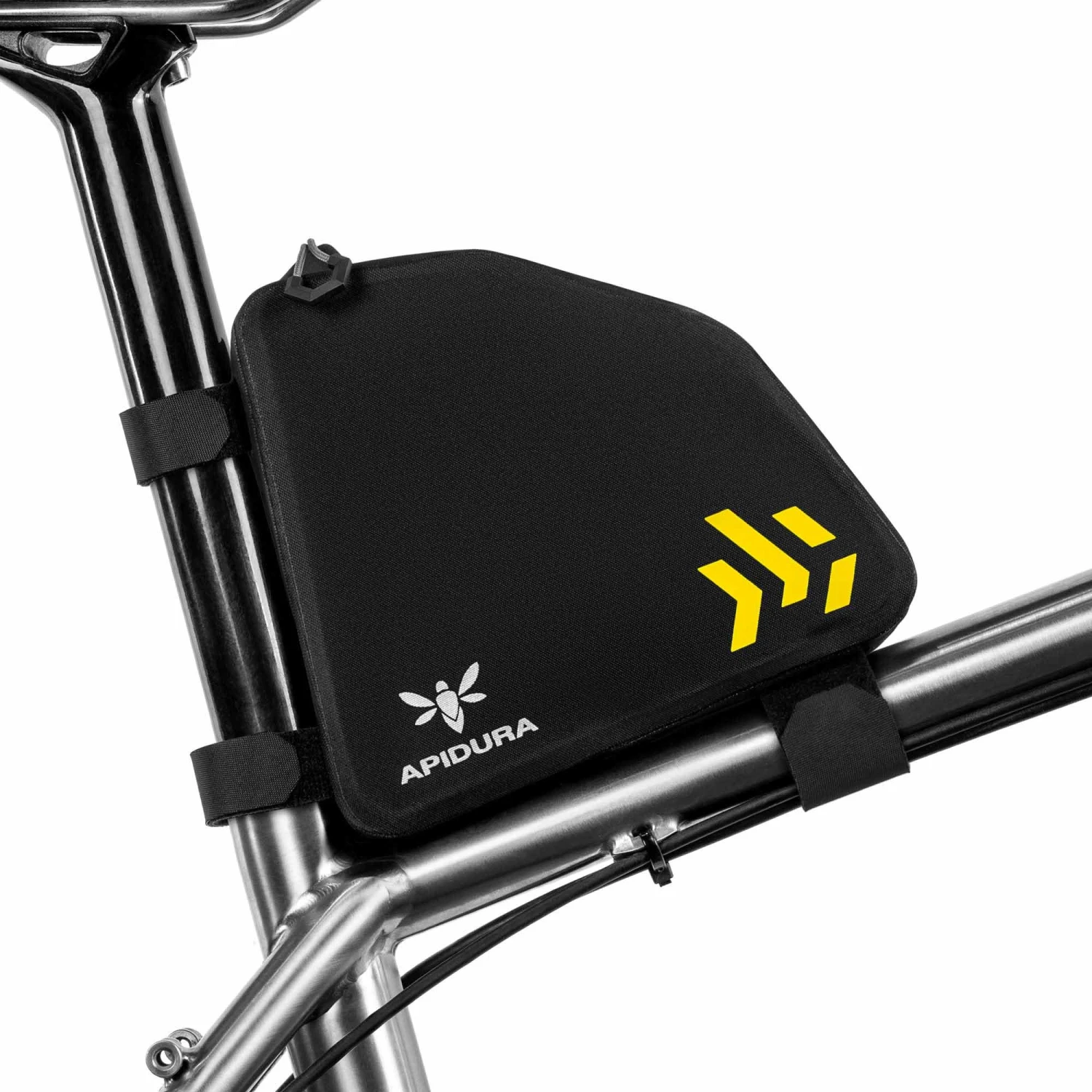 Padded with closed-cell foam and made from waterproof materials, Apidura’s Backcountry Rear Top Tube Pack is the perfect place to store and protect up to one litre of frequently needed items like phone, camera or wallet. The design fits the angle between the top tube and seat tube without impeding pedalling at all and is held in place by Hypalon reinforced Velcro straps.