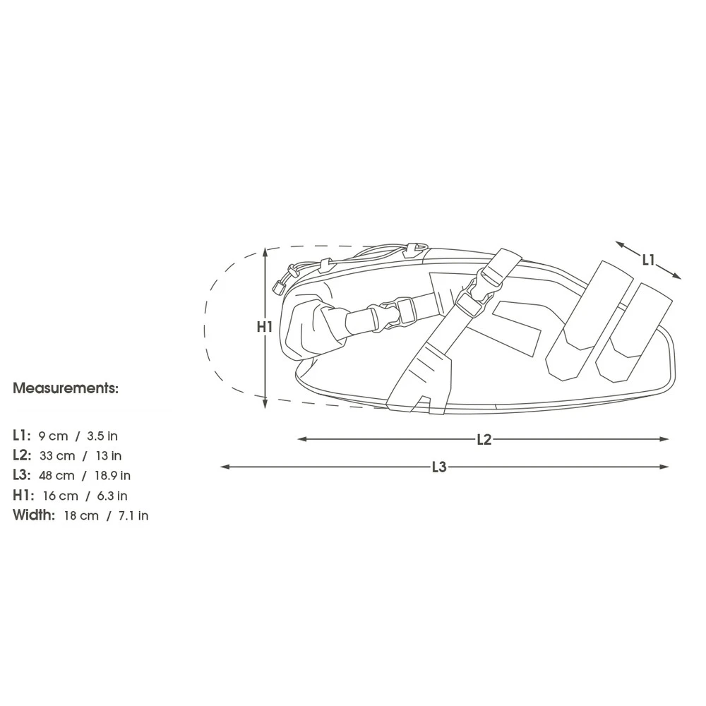 With external mounting for two bike lights and high visibility reflective highlighting, this saddle pack allows the rider a sound sense of security whilst out on the road. A bungee cord incorporated into the structure of this saddle pack allows the rider a means of storing lightweight items like jackets externally, you can extend the 14L capacity ever upwards. Reinforced in high abrasion areas with a super strong TPU hypalon fabric, you can be sure that this saddle pack is ready to respond to your needs as you explore.
