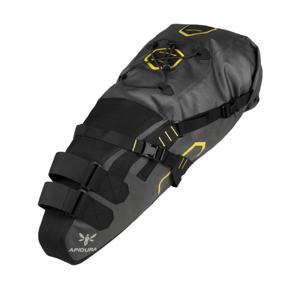 The Apidura Dry Series Saddle Pack 14L offers the adventurous rider the ability to take crucial, bulky, light kit with them on the course of their ride, allowing them to carry their essential spares, be them clothing or parts, as they head out onto gravel tracks and dusty roads.