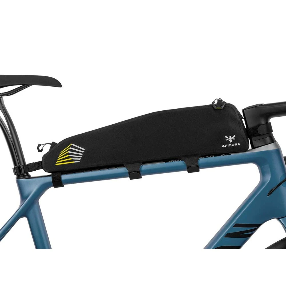 Waterproof and durable, Apidura’s Racing Long Top Tube Pack has two litres of easily accessible cargo space, perfect for storing extra layers, a phone and any nutrition that might be needed throughout the day. A two-way zip means that the bag doesn’t have to be fully opened to find the contents and an adjustable internal divider allows the interior to be split for better organisation. There is a protected cable port at the front for use with electronic devices and five Hypalon reinforced Velcro straps hold the pack securely on the top tube.