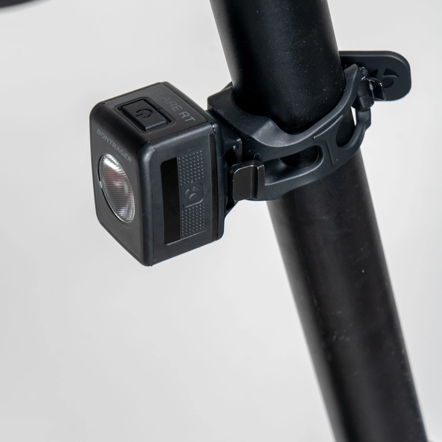 With simple USB charging and the ability to connect to Garmin and Bontrager ANT+ devices for battery status and wireless control, there is no excuse for running out of juice. Even so, the Flare RT2 has a battery save mode that clicks in at five percent power remaining to give 30 minutes illumination. Easily mounted to helmet, frame or handlebar, and round seatposts, the Ion 200 RT / Flare RT2 Light Set offers great visibility and safety for any commute or training ride.