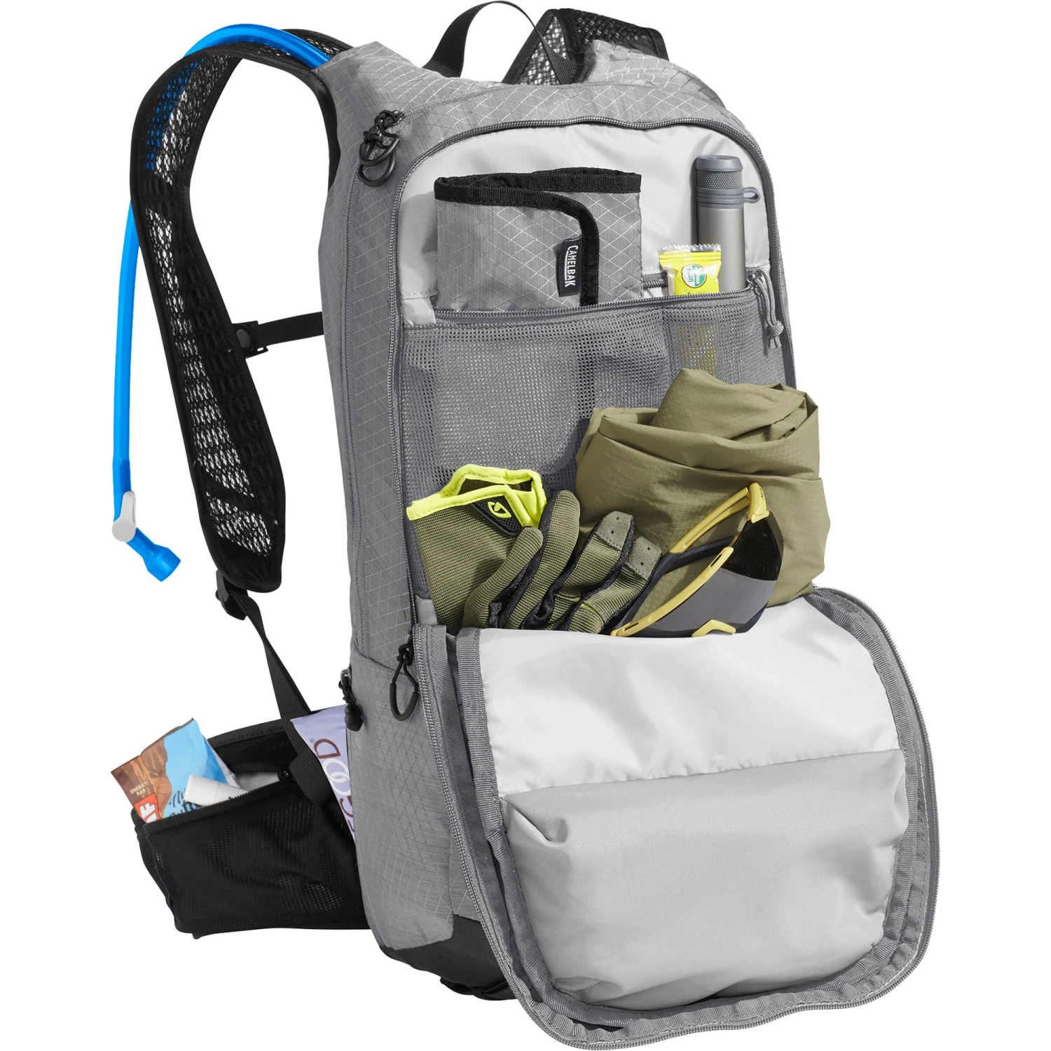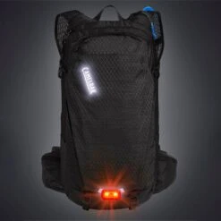 CamelBak’s biggest bike bag, the H.A.W.G Pro 20L Hydration Pack + 3L Reservoir is ideal for big days out away from civilization. A plethora of pockets both inside and out allow gear to be well organised, with two zipped hip belt pockets for frequently used items. A tool organiser roll is included and there is even a specific place to carry an e-bike battery. An open or full-face helmet and pads can be carried on the outside and the pack is compatible with CamelBak’s Impact Protector. Long rides need plenty of hydration, so a three litre CRUX Reservoir is provided; this has a fast flow rate for drinking and a bite valve that can be looked off when not required and the hose can be detached from the bladder for easier refilling.