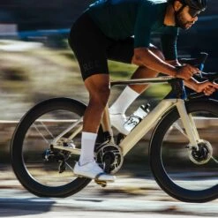 The KNOT 64 Carbon Clincher Disc Rear Wheel from Cannondale uses a 64mm deep carbon rim, bladed DT Swiss Aerolite spokes and DT Swiss hub internals to make a very fast wheel. Indeed, as part of the wheelset this was the design start point for the whole Cannondale SystemSix race bike. The 32mm wide rim helps the air reattach itself to the narrower tyre in order to smooth the airflow over the wheels and lower drag and the design of the wheel and tyre package means that the aerodynamic advantage is still effective at a wide variety of yaw angles. The wheels are tubeless compatible and come supplied with valves and tape for the conversion, allowing the lower rolling resistance and greater comfort of tubeless to be taken advantage of.
