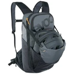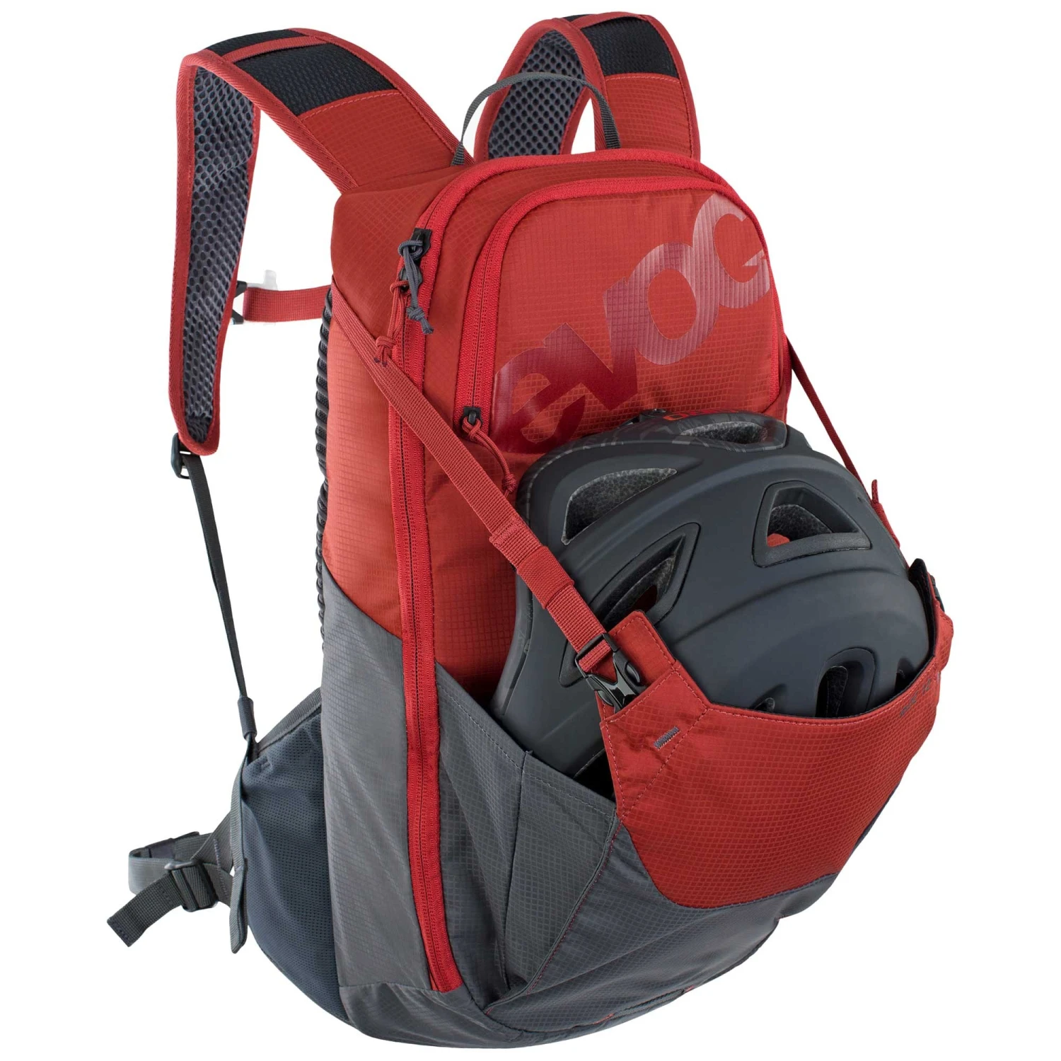 Included with EVOC’s Ride 12L Backpack is a 2L Bladder, helping ensure that hydration is a priority on warm days and long rides. The central egress point enables the hose to be routed down either shoulder strap depending on preference and for really big days there is space for a three litre reservoir in the bladder slot instead. Either style of helmet can be carried on the outside of the bag using the transport flap and tools have their own, separate easy-access compartment so trailside repairs are quicker. The wide hip fins on the waist belt improve comfort and stability whilst the AIR PAD back panel is cushioned and well ventilated.