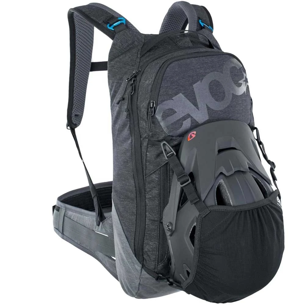 With a multitude of pockets, a 10 litre capacity and an integrated back protector, EVOC’s Trail Pro Backpack is a great choice for carrying the essentials on the trails. Organiser pockets include a specific tool compartment, and the zipped hip belt pockets are ideal for carrying frequently needed items such as a phone or camera. There is a flap that can be used to hold a helmet and an internal reservoir slot for a water bladder. The padded back and AIROFLEX hip belt keep the pack stable and comfortable when loaded up, with the BRACE LINK design enabling the shoulder straps to be adjusted for width.Â