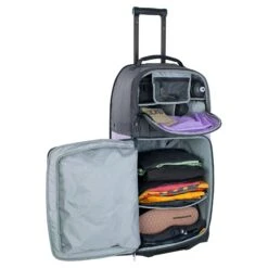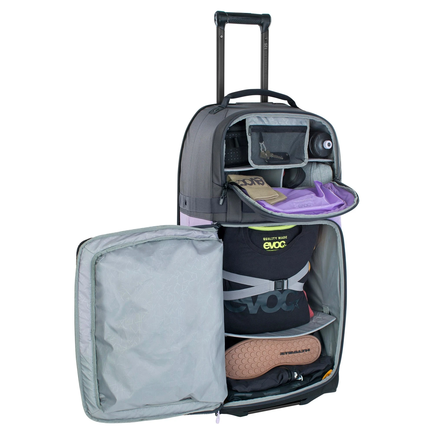 EVOC’s World Traveller Bag has a massive 125-litre capacity and allows you to keep all your clothes, sports gear and other items well organised during travel. It’s split 80:20, with the larger compartment containing a partition and compression straps. The upper section has a number of partitions, a zipped section and a carabiner for keys. There’s even a skateboard attachment point included.Â
