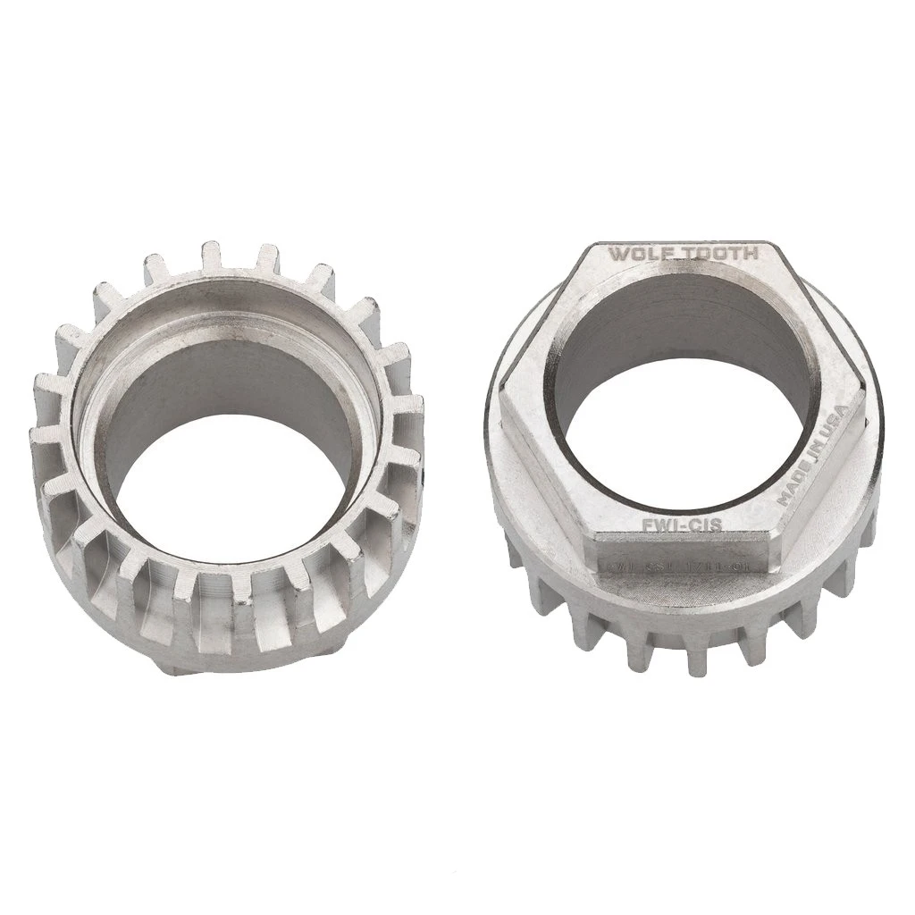 Simple additions that reduce your reliance on huge and heavy tools, these clever Wolf Tooth Components Flat Wrench Inserts are made to slide into a 1-inch hex socket in order to provide quick and light adjustment on those occasions where you find yourself far from a workshop. Made from CNC machined hardened steel and benefitting from electroless nickel plating, these tool heads are strong and dependable. With five separate options, Wolf Tooth have produced options to work with 8 and 16mm hex wrenches, 20mm sockets, cassette lock rings, and Cinch and Isis splines.