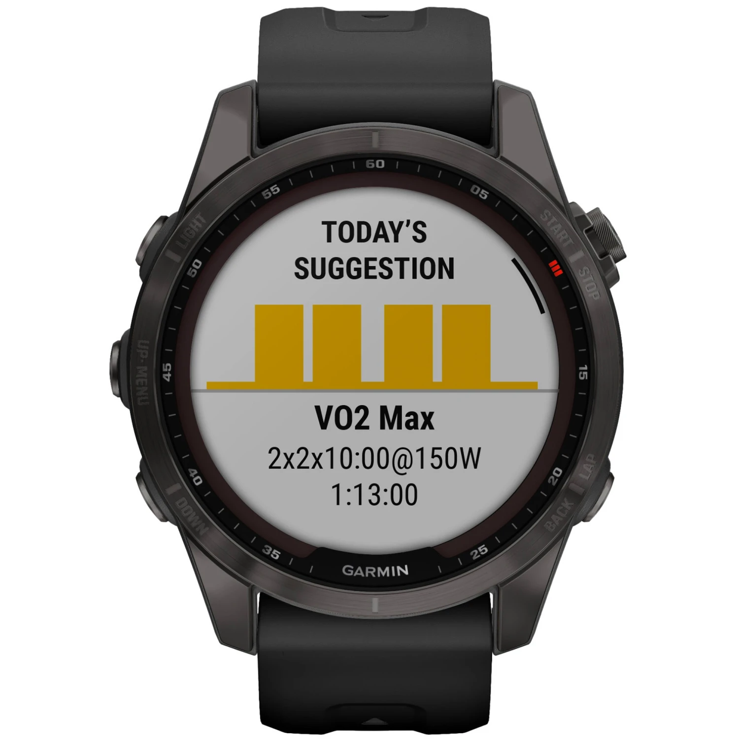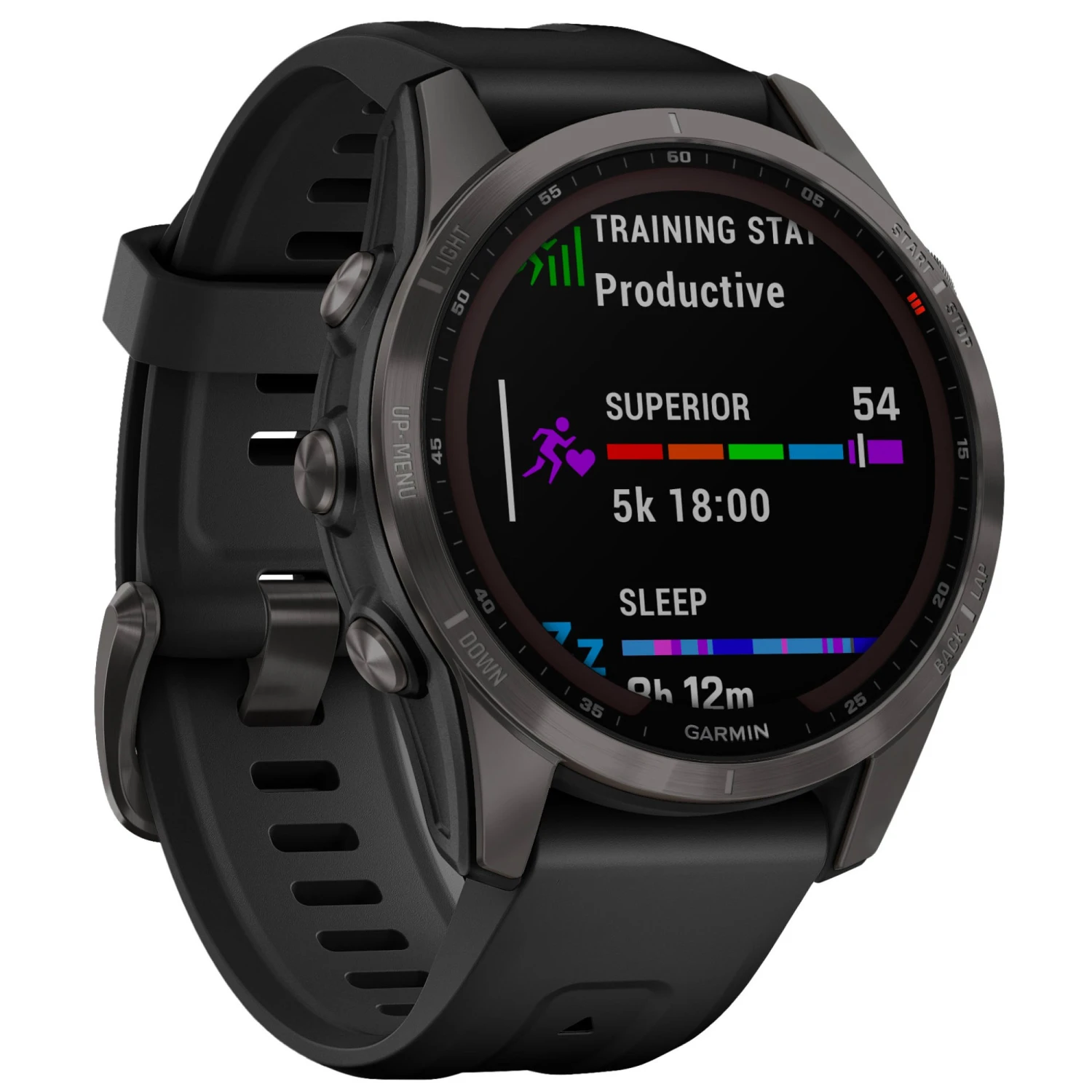 A 3-axis electronic compass, altimeter and barometer help you keep on track of your location and environment manually, while the Sapphire designation ensures unrivalled GPS performance, even when the signal is weak. The Solar feature enhances battery life, absorbing energy from the sun to boost your battery life, and 24/7 wellness tracking for respiration, heart rate, and sleep keep you on top of your health.