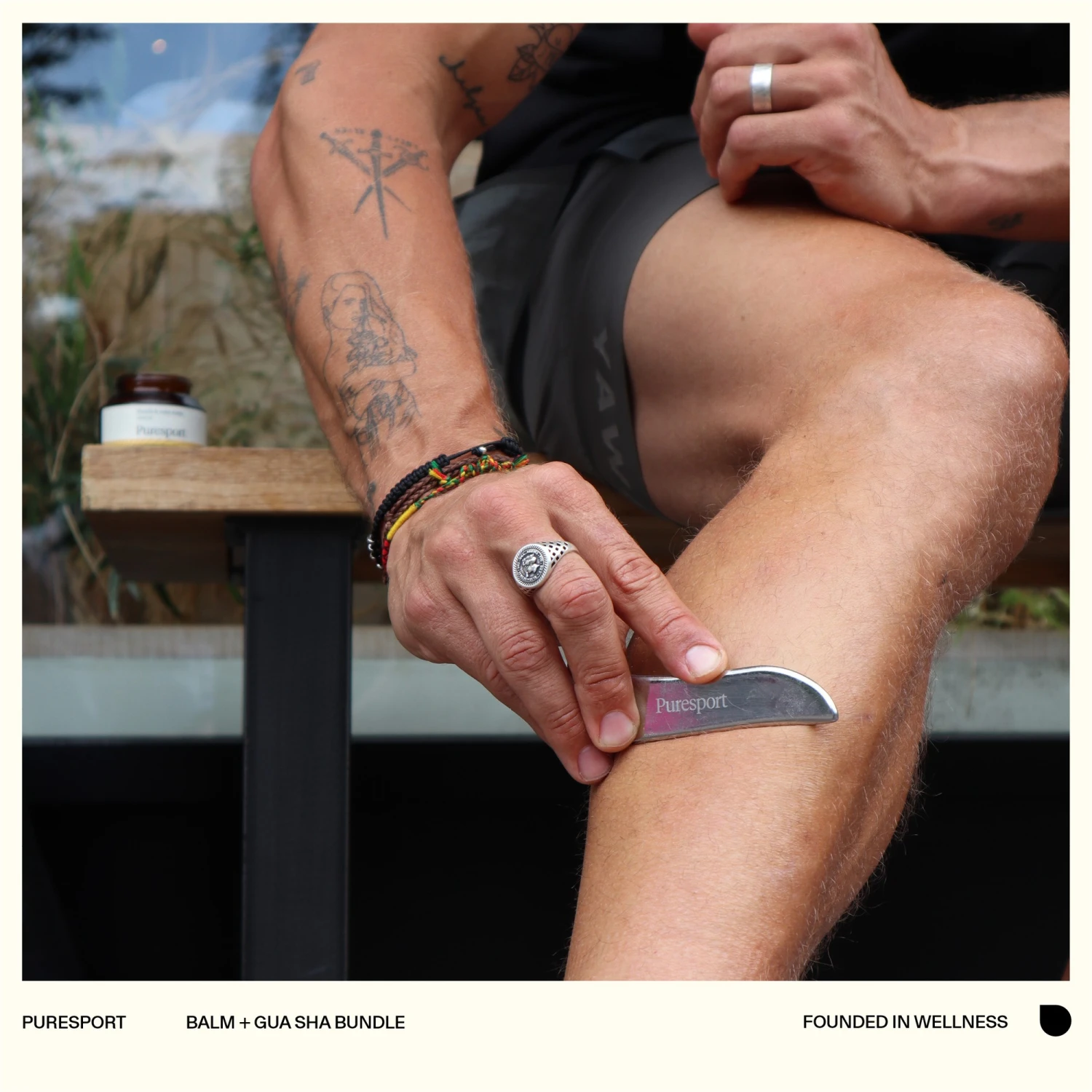 Puresport’s Stainless Steel Gua Sha is designed by athletes for the optimal shape and can be used with the best-selling topicals like the Muscle + Joint Balm, or Freeze Roll-On.