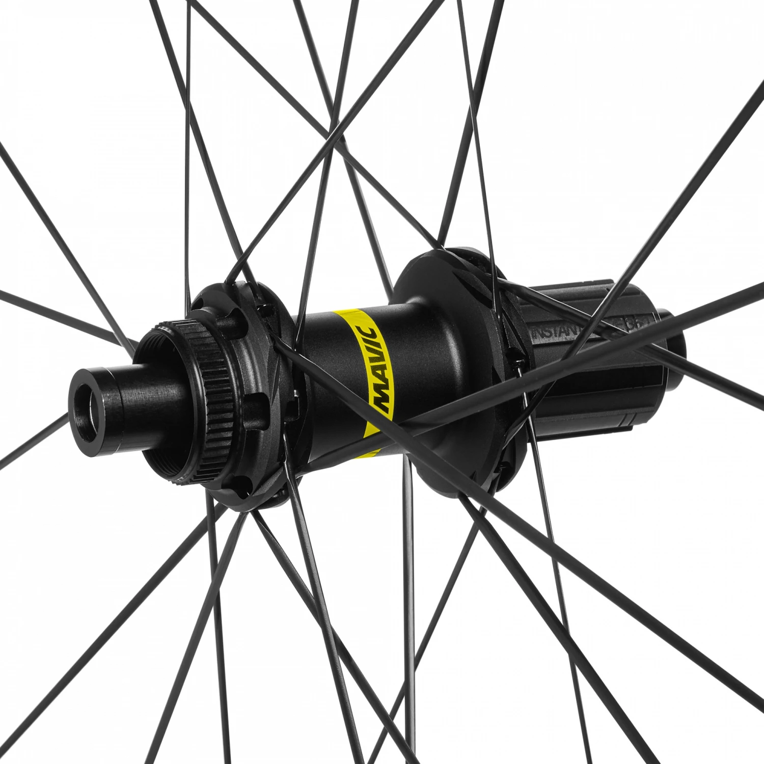 Both hubs use Mavic’s QRM Auto bearing preload technology that keeps the sealed bearings adjusted to spin freely without the need for maintenance and the rear hub also benefits from an Instant Drive 360 freewheel with contactless rubber seals and rapid engagement.