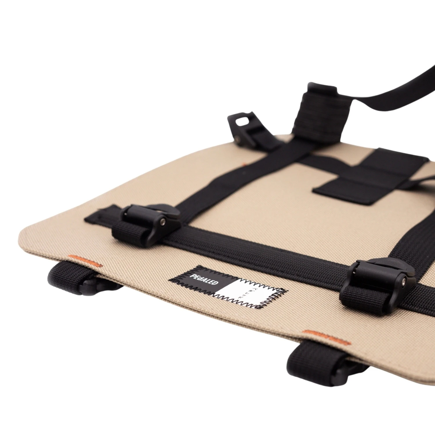 Fill it up, roll it down, clip it in, and head out—the Odyssey Handlebar Bag adds 7.5L of weatherproof storage to the cockpit of any road, gravel, or mountain bike. Made up of two parts—an expandable, waterproof dry bag and a secure harness—the Odyssey Handlebar Bag is the perfect place to tuck your sleeping bag, spare clothes, or any larger items that simply must stay dry. A large reflective logo boosts rider visibility after dark while the roll-top design means you can easily scale storage needs to the size of your adventure.