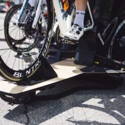 The Saris MP1 Nfinity Turbo Trainer Platform has 6 degrees of angle and 23.5cm (9.5”) of fore and aft travel to recreate how the bike moves under a rider. This movement helps alleviate pressure points that can occur on a static bike, and also requires the recruitment of micro-muscles for balance like in the real world so provides a better workout too. The platform can be used with most brands and models of turbo trainer as it has a number of straps and slots to hold various units.