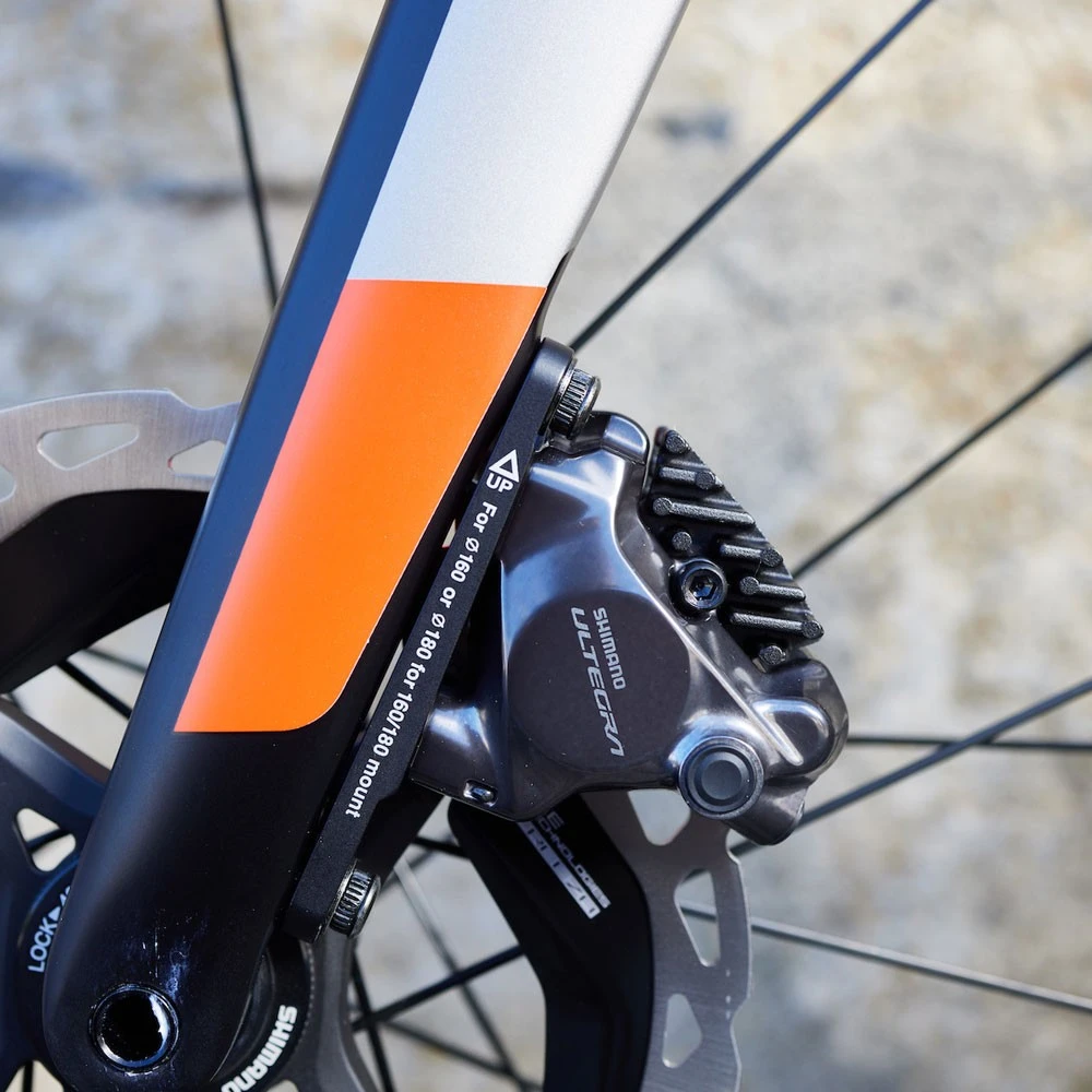 Part of Shimano’s latest Ultegra groupset, the R8170 Front Disc Brake Caliper provides great control and modulation thanks to the opposed 22mm ceramic pistons. Heat insulation and dissipation on long, technical descents are helped both by the ceramic material and the fins on the resin pads, ensuring that power is consistent and fade-free all the way down.