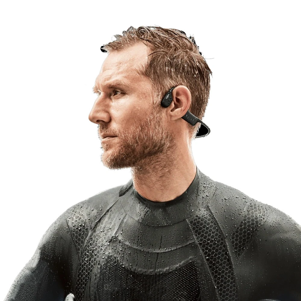 A lightweight titanium frame and soft-touch silicone keep the headphone secure and comfortable, and they won’t interfere with goggle straps, earplugs or swimming caps.