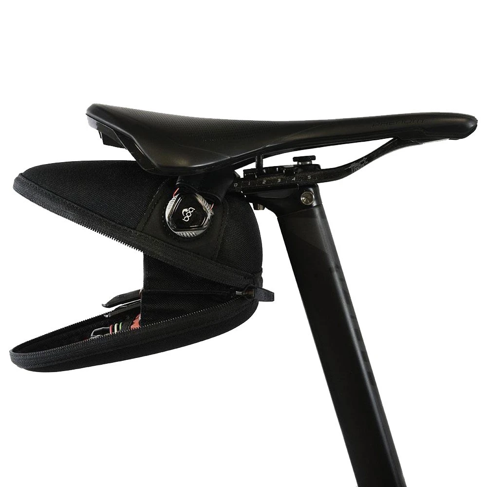 The Boa closure system is a premium fastener that features a rail guard, providing excellent grip while protecting your saddle rails. The locking YKK zip bisects the lower third of the bag, positioned carefully to provide access to the contents while still attached to the bike.