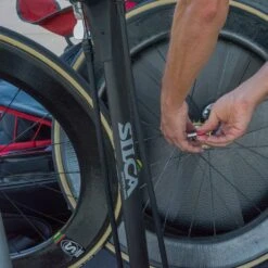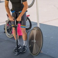 A first in design for Silca, the Super Pista Digital Floor Track Pump utilises a top-mount hose design and top-mount magnetic chuck storage. The result? Ease of access for the user and a reduction in the risk of back strain. A full metal HIRO chuck is compact, adjustable and holds well on all valves and valve extensions. The large base ensures stability, and a lathe-turned ash handle provides supreme comfort. This is a pump that provides top efficiency and will pump your tyres up to 220psi, making it perfect for tubular setups. The advanced digital gauge is accurate and includes a backlight and an adjustable pressure alarm.