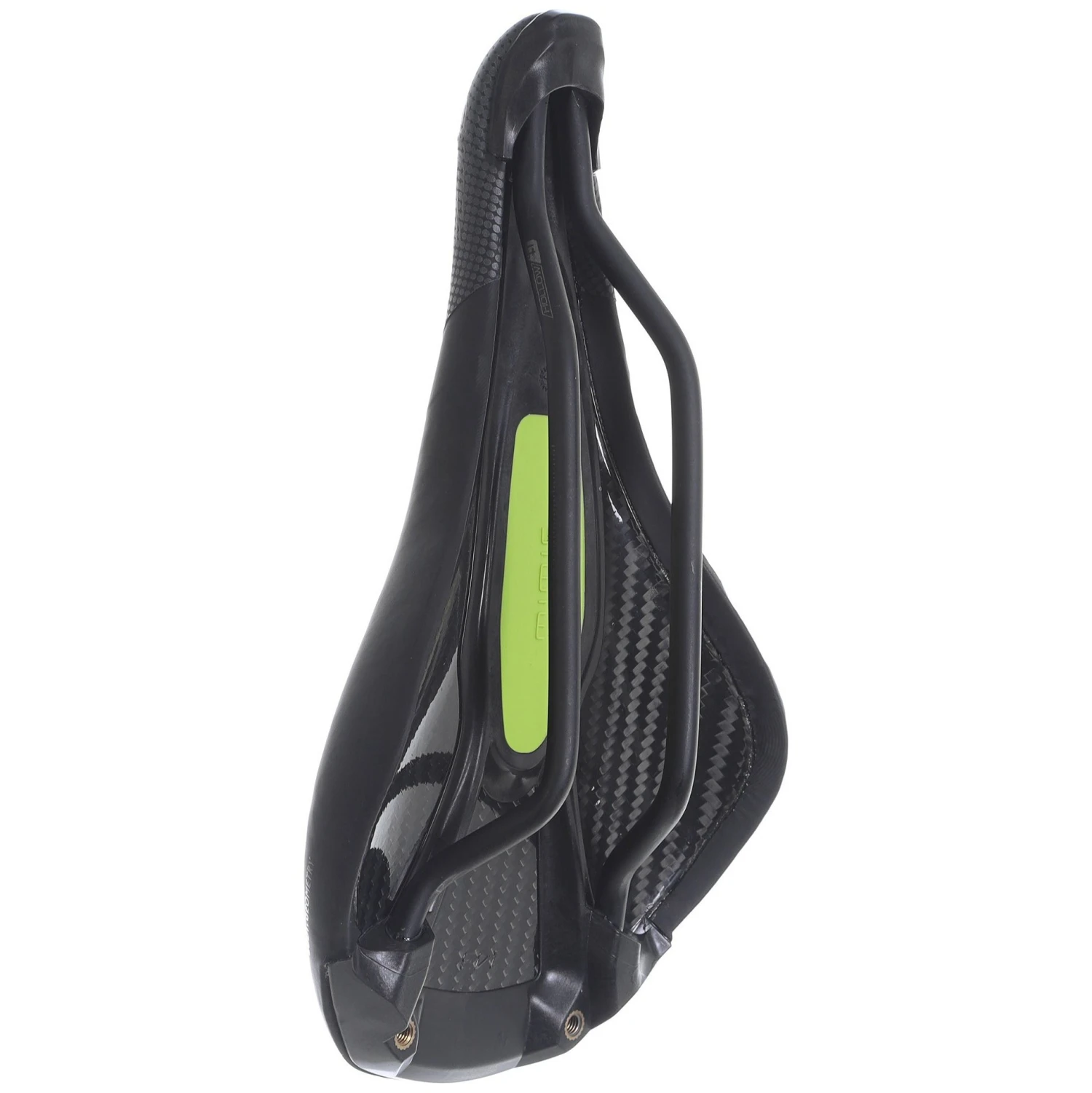Body Geometry design ensures blood flow to sensitive arteries is not compromised, further reducing the chances of numbness after hours in the saddle. The short-nosed shaped of the Power minimises pressure, making it ideal for road riders and those in a more aggressive racing position. The saddle is supported by a stiff yet compliant FACT carbon fibre shell and sits on strong, light and durable titanium rails.Â