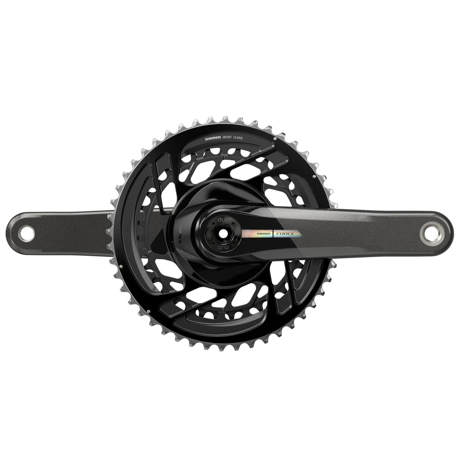 The crank is the very center of Srams X-Range gearing philosophy. With tight 13-tooth gaps between chainrings paired to wide-range cassettes, riders get more range while shifting less frequently and staying in the big ring longer. Previously only available on RED, these integrated chainrings are light, stiff, and incredibly durable. The black finish mated to dazzling glossy carbon arms will elevate any bike.