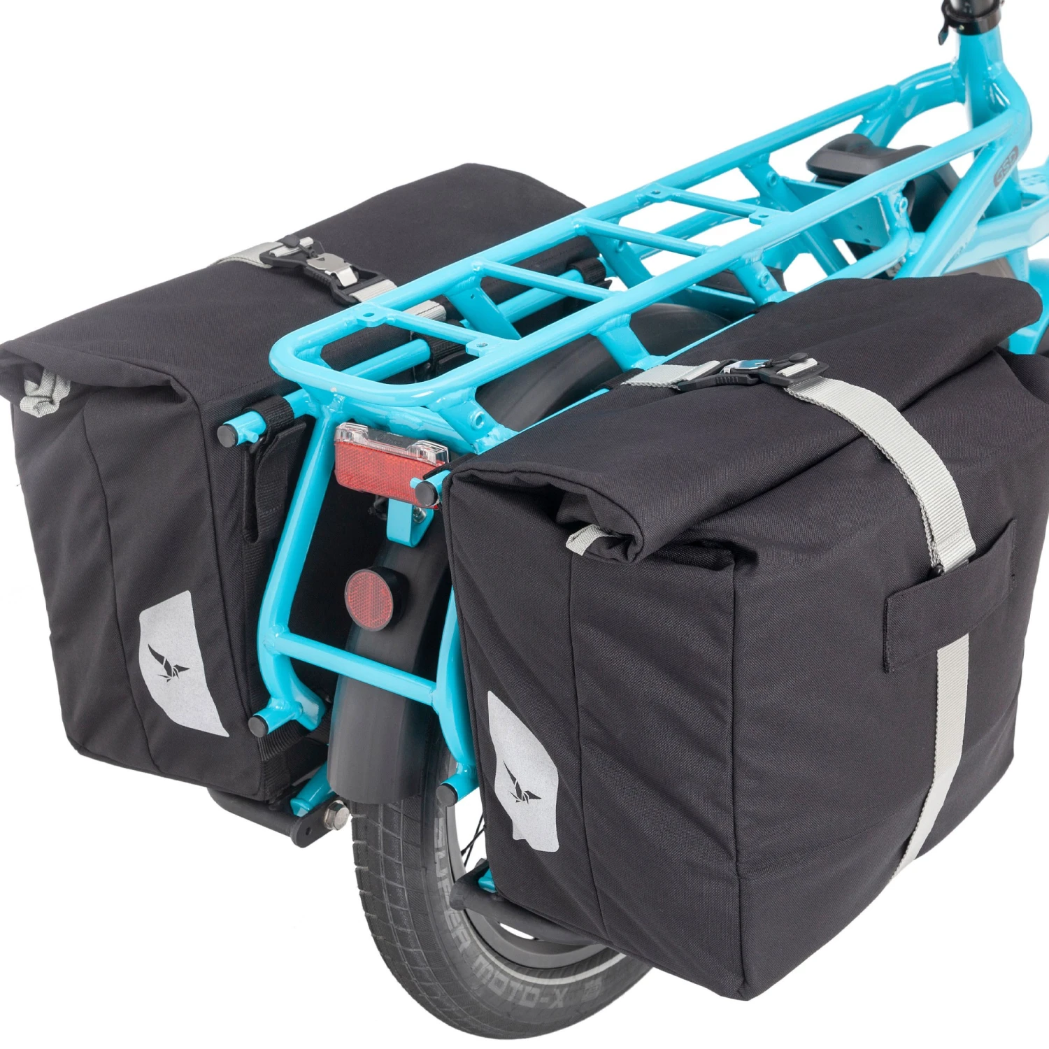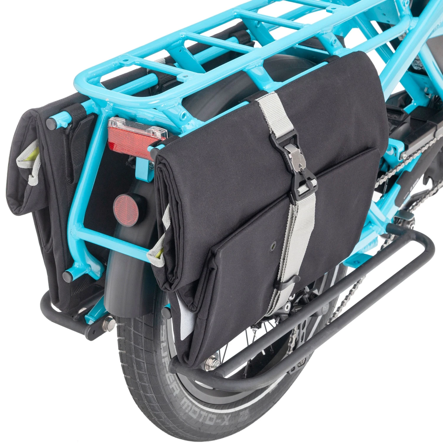Tern’s Cargo Hold 37 Panniers add extra carrying capacity to their HSD and GSD models. The design offers two useful modes – closed using the roll-top Fidlock® magnetic buckles for weather protection or open for larger items. Either way, the tough nylon fabric is extremely durable to withstand the rigours of daily use and it is Bluesign approved for proof of a lower environmental impact. The panniers can be used in conjunction with the Tern Yepp single seat.