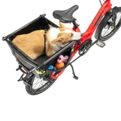 Tern’s Soft Crate Mini Carrier, used in combination with the Clubhouse Mini, allows a small or medium sized dog to be carried on the bike, comfortably and safely. When you’re not with your dog, the carrier doubles up as a crate for hauling groceries, offering an ample 37 litres of space. Mesh panels ventilate the carrier, and there are tethers for attaching to a harness to maximise safety.