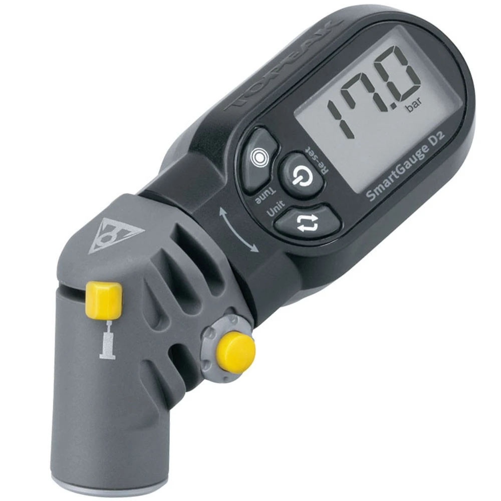 A precision digital pressure gauge for use with road and MTB tyres, the Topeak Smart Gauge D2 is also ideal for use on suspension forks and rear shocks. The SmartHead fits both Presta and Schraeder valves.