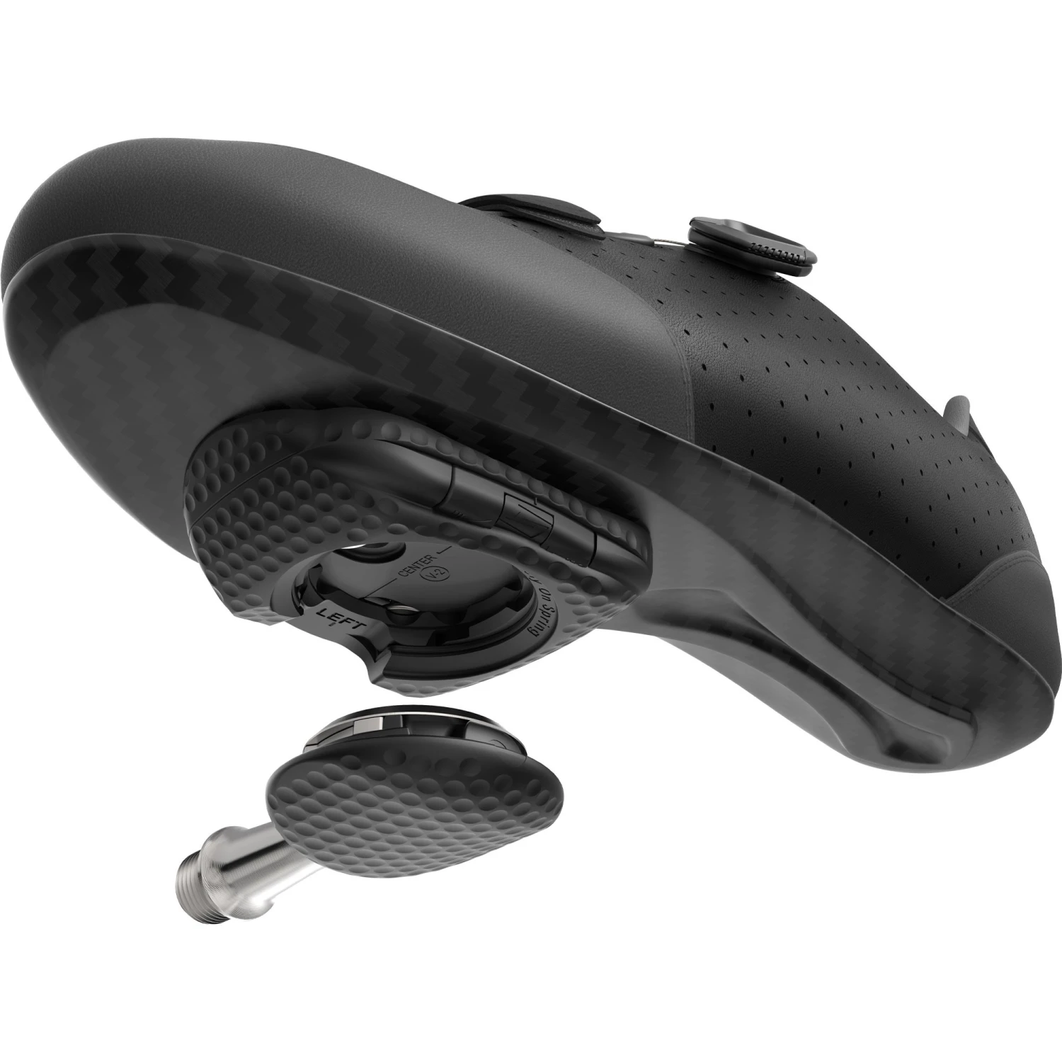 - The single-sided format features a dimpled, aero-profiled underside that integrates seamlessly with the cleats to reduce aerodynamic drag
