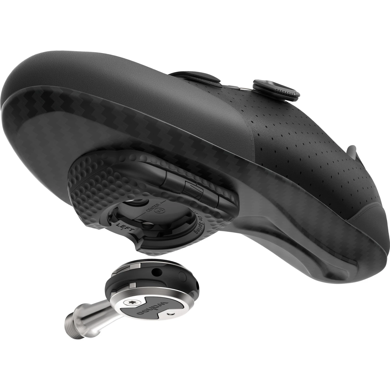 - Three-axis cleat adjustability allows for fore-aft, left-right and rotational adjustment