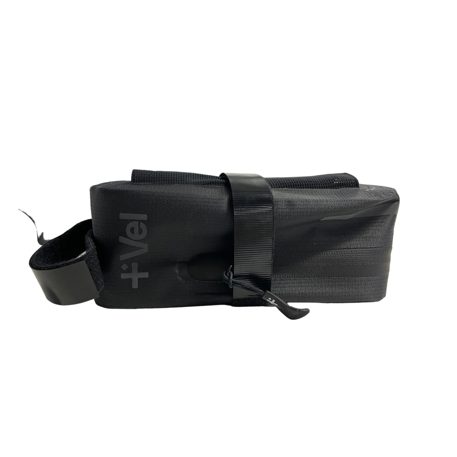 Vel’s Large Waterproof Saddle Bag II is a straightforward yet highly efficient solution for carrying essential tools and spare parts while cycling. The bag’s 0.8 litre capacity is fully waterproof thanks to welded seams and a water-resistant zip, protecting its contents from both rain and road spray. A generously sized clamshell-style zip allows for easy access. Additionally, the bag features an internal stiffener to evenly distribute weight and a mesh pocket to organise its contents. On the exterior, a mesh sleeve securely holds a small pump while Velcro straps attach the bag to the saddle rails and seatpost. Extended zip pulls allow for easy opening even while wearing gloves, while reflective details enhance visibility in low-light conditions.